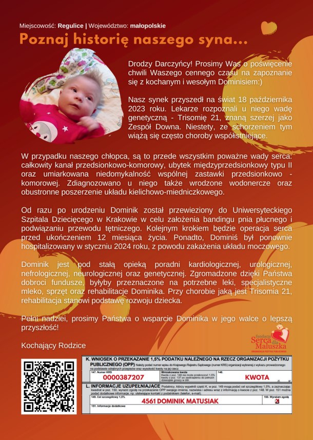 Tym razem dochód z maratonu przekazany będzie dla małego Dominika – mieszkańca naszej Gminy.